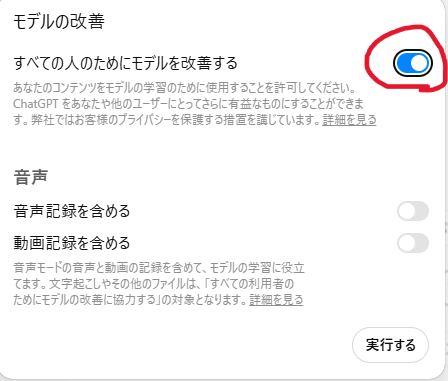 オプトアウト設定とは、入力したデータが学習に利用されないように利用者側でコントロールする設定のことです。