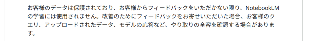 「NotebookLM 情報漏洩のリスクや、学習に使われるかどうかを事前に確認しておきたい。」