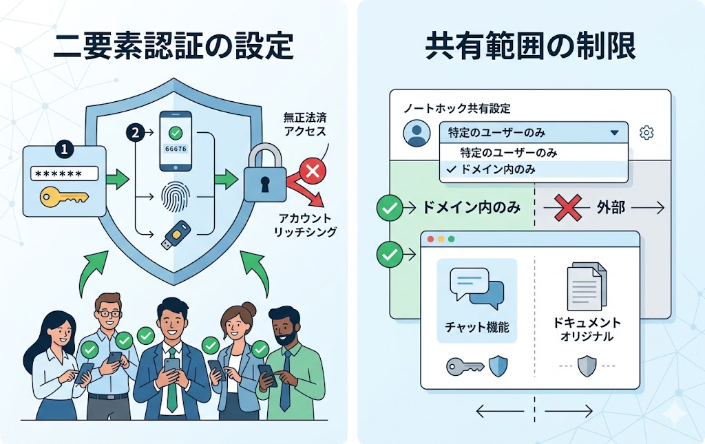 NotebookLMを業務利用するすべての人に対して、二要素認証の設定を組織ルールとして義務化することが理想的です。